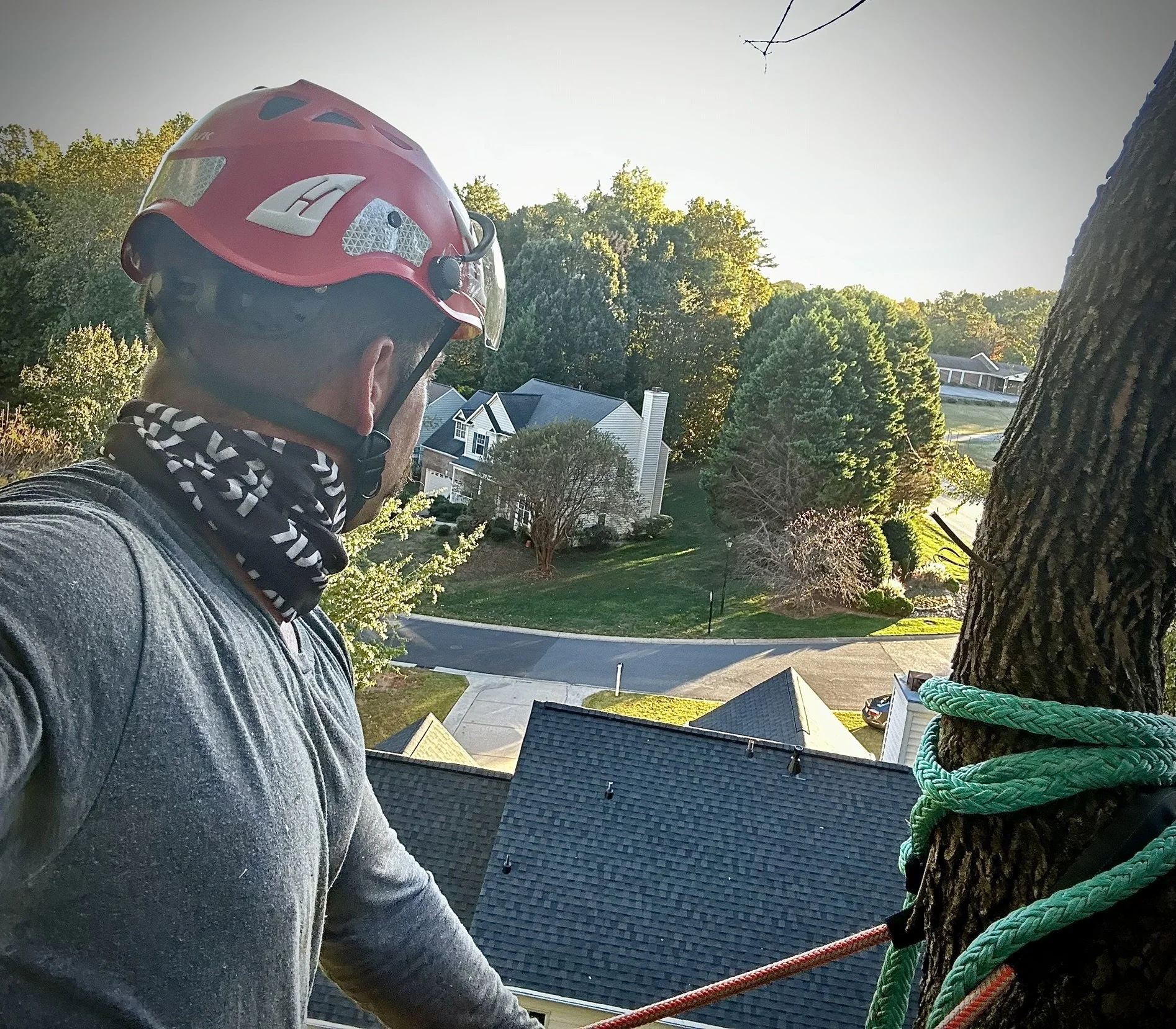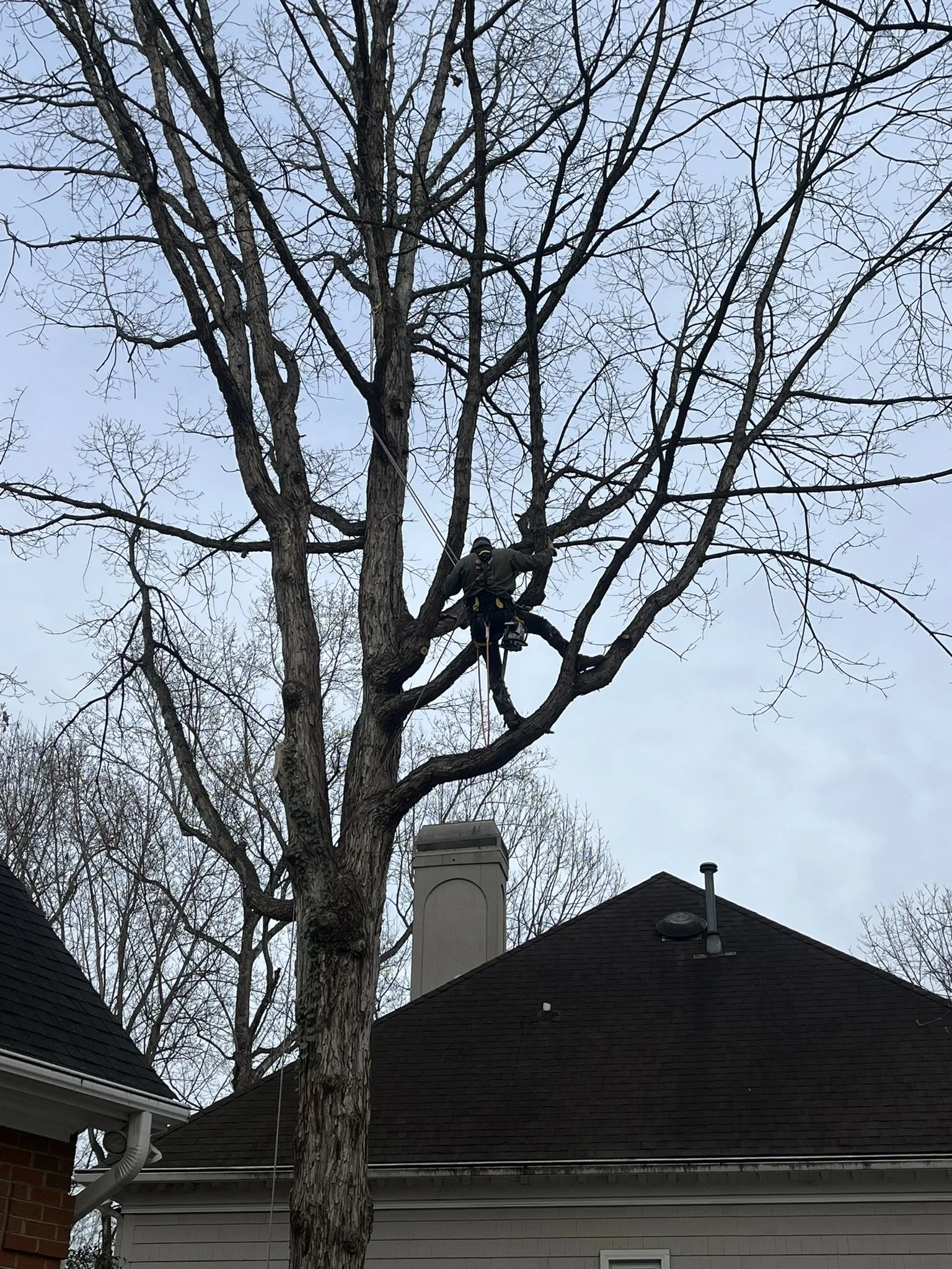 • Safe, controlled removal of trees in tight, complex areas - near homes, fences, and other structures - using precision rigging and professional climbing techniques.